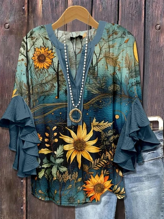 Easter Women's Blouse V Neck Floral Graphic Elegant Bohemia