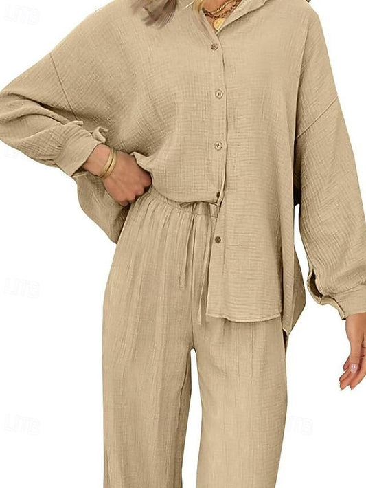 Women's Blouse Linen Like Breathable Lightweight Long