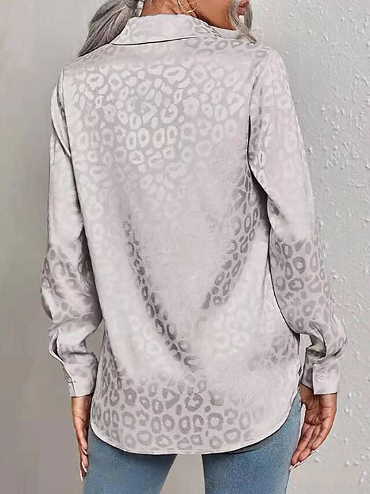 Women's Shirt Elegant Satin Top Blouse Buttons Leopard