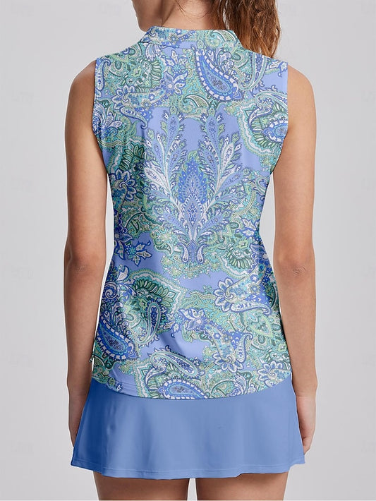 Women's Golf Polo Shirt Light Blue Sleeveless Top Paisley