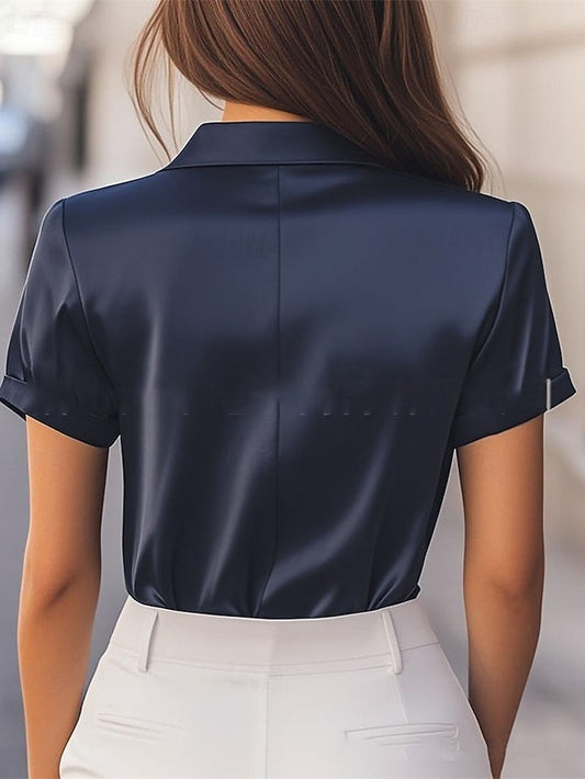 Women's Elegant Satin Top Summer Tops Blouse Ruched