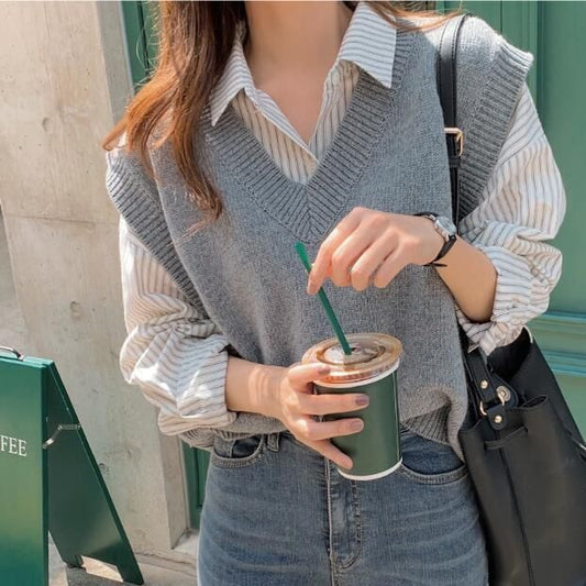 Long Sleeve Stand Collar Striped Button Up Shirt
