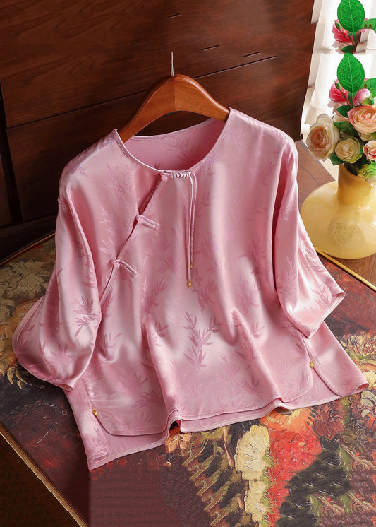 New Light Green O-Neck Button Silk Blouses Bracelet Sleeve GG007
