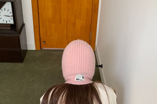 Lace-Up Knit Plain Applique Balaclava Ribbed