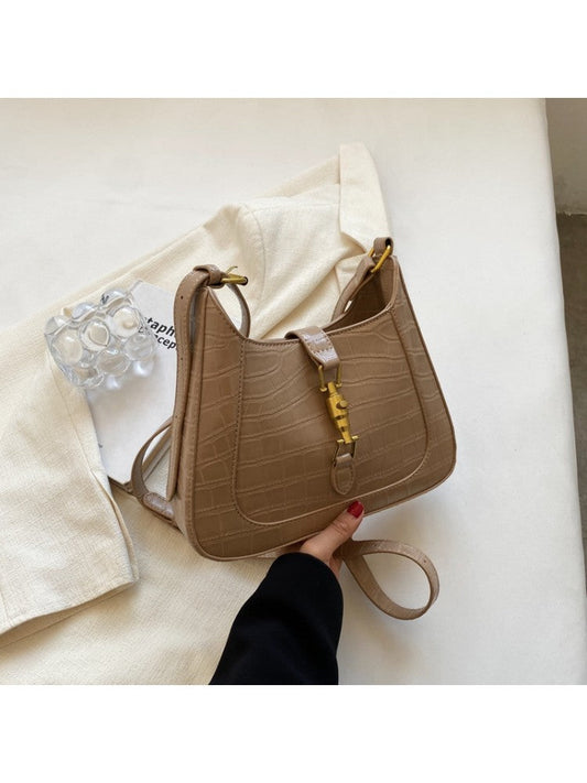 Crocodile Grain Faux Leather Flap Crossbody Bag