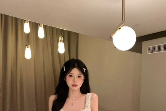 Plain Embroidered Eyelet Peplum Panel Lace Camisole Top