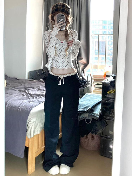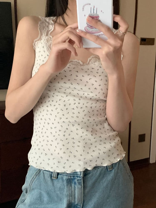 Novelty Black Button Hollow Out Lace Tank Sleeveless QP002