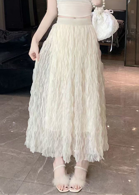 Stylish Grey Wrinkled High Waist Tulle Skirts Fall QP006