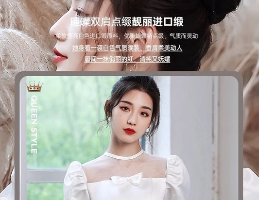 Short Sleeve Square Neck Bowknot Plain A-Line Wedding Gown