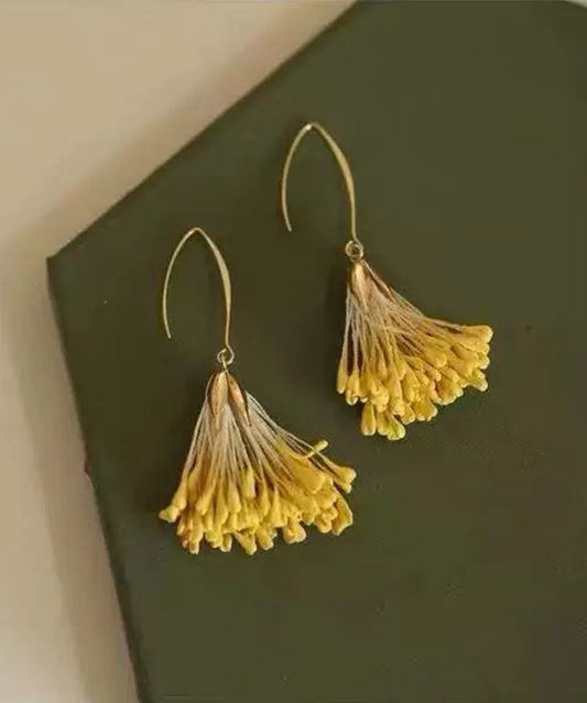 Earrings Yellow Alloy Floral Holiday Design Original Drop