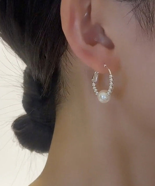 Hoop Silver Style Silk Earrings Sterling Pearl