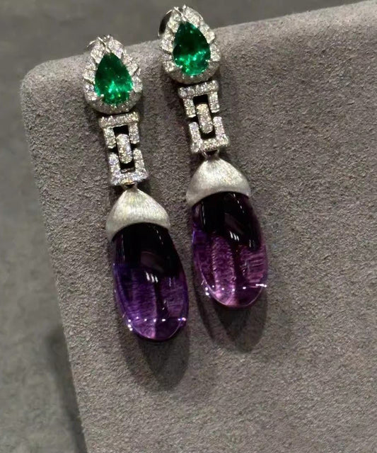 Earrings Art Colorblock Overgild Copper Gem Drop Stone