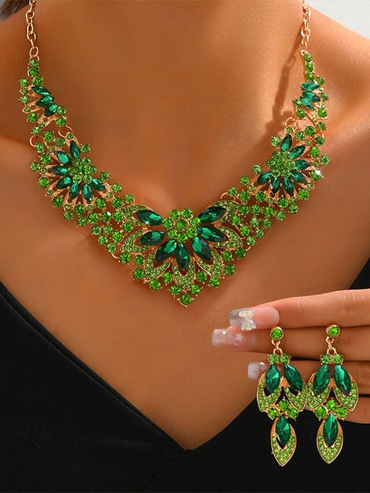 Jewelry Necklace Set – Elegant Green Statement Crystal