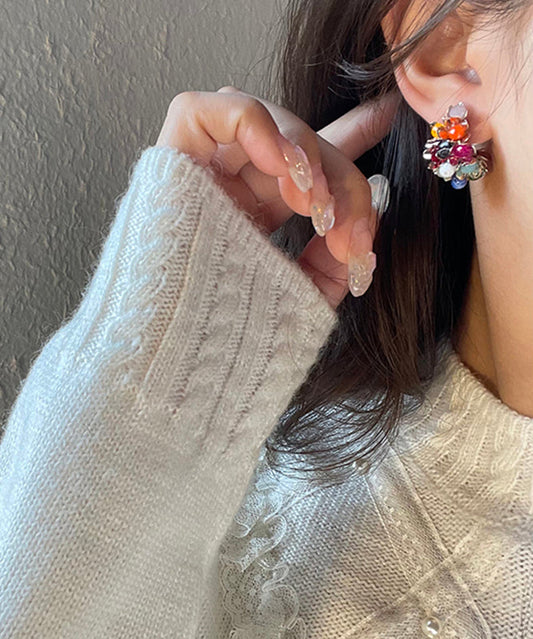 New Rainbow Sterling Silver Crystal Floral Stud Earrings WH001
