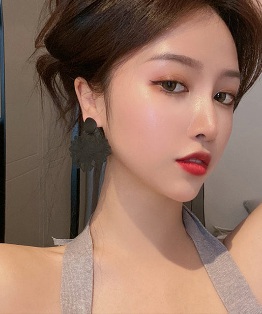 Stylish Black Sterling Silver Alloy Hollow Out Floral Drop Earrings WH002