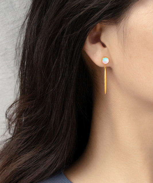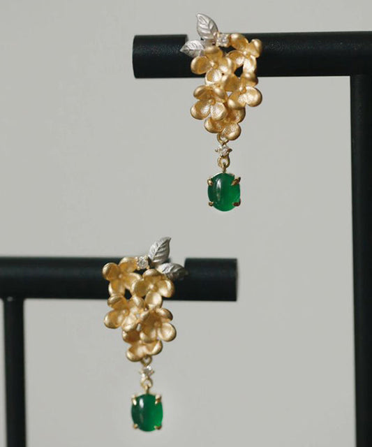 Boutique Gold Sterling Silver Overgildr Jade Fragrans Tassel Drop Earrings PO024