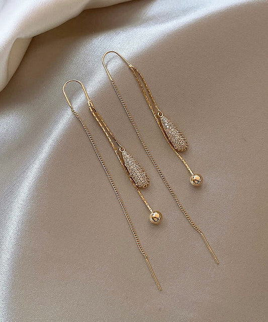 Classy Gold Copper Alloy Zircon Tassel Drop Earrings PO028
