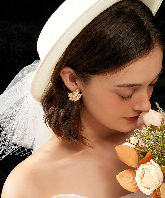 Fine Gold Copper Overgild Leaves Stud Earrings PO021
