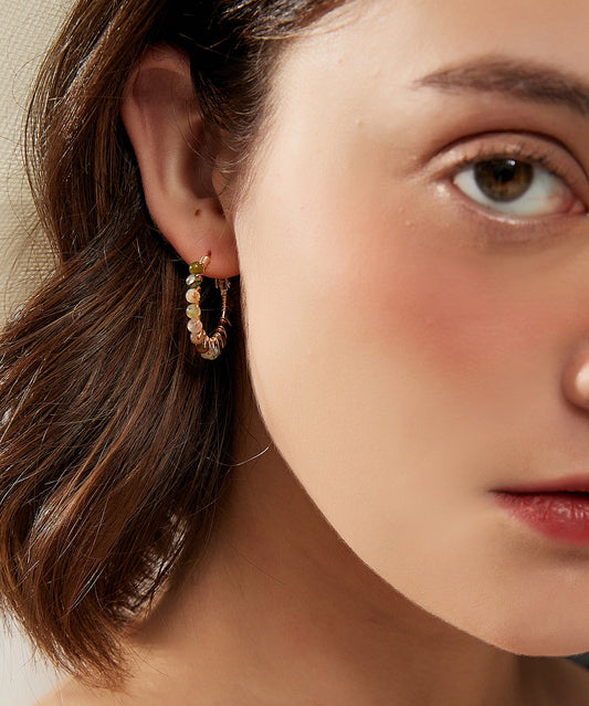 Loose Green Copper Overgild Gem Stone Hoop Earrings PO022