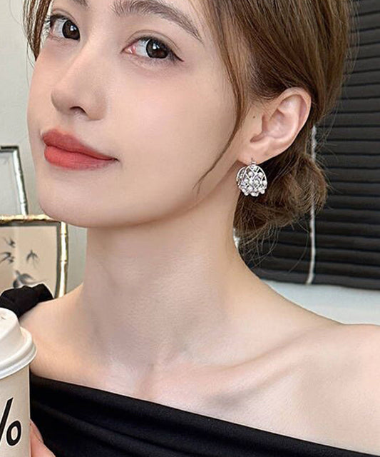 DIY Light Grey Sterling Silver Petal Tassel Stud Earrings PO025