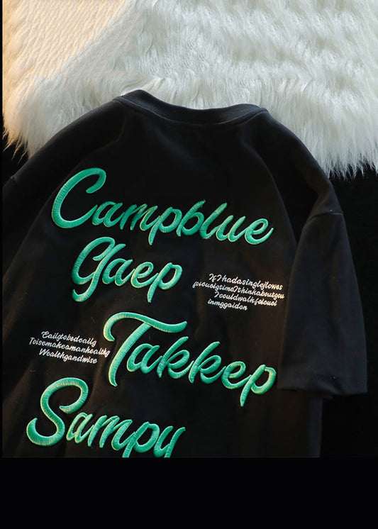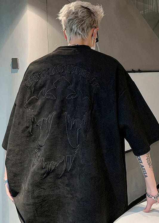 Black Embroideried Shirt Mens Summer Stylish O-Neck T