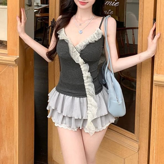 Tie Camisole Dye Shoulder Top Asymmetrical