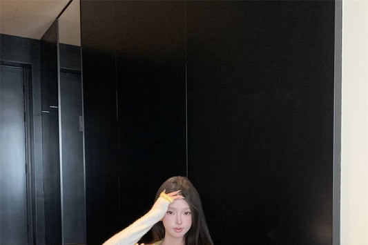 Scoop Button Cami Top High Waist Cardigan / Contrast Neck Trim Pencil Mini Skirt