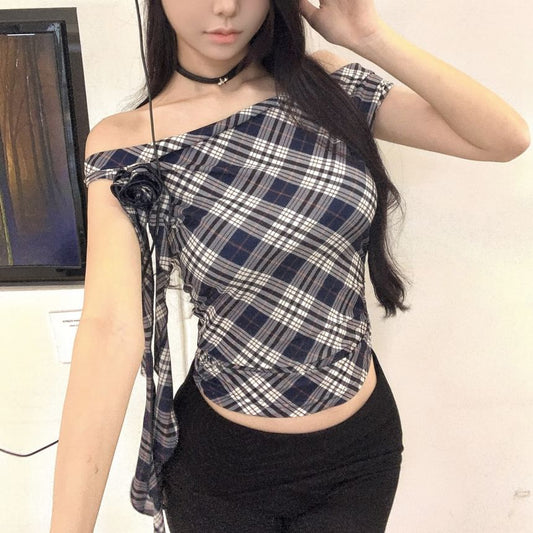 Shoulder Off Sleeve Ruffle Short Blouse Plain