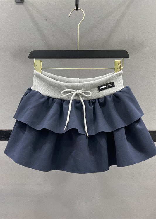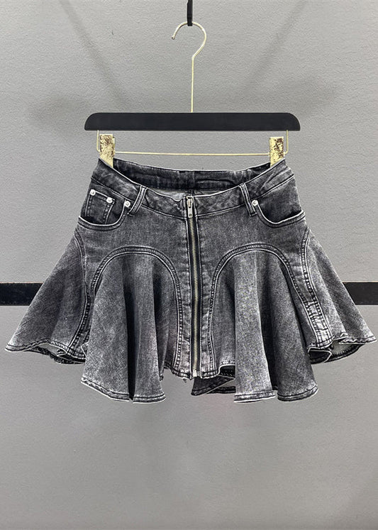 Zippered Denim Blue Ruffled French Patchwork Skirt Summer