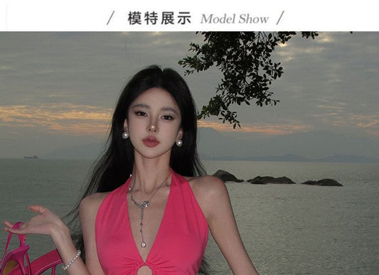 Bodycon Plain Neck Cutout Dress Halter Midi
