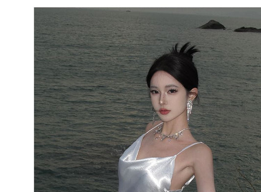 Maxi Plain Strap Spaghetti Dress Mermaid