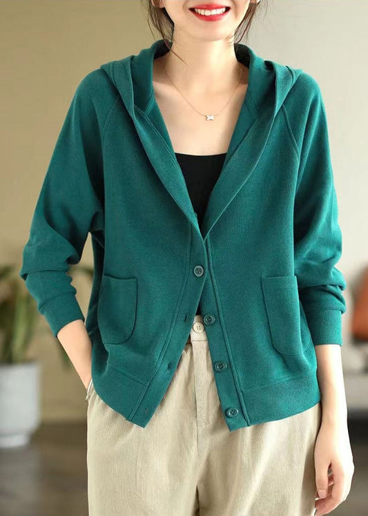 Plus Size Green O Neck Pockets Button Knit Coat Spring TJ008