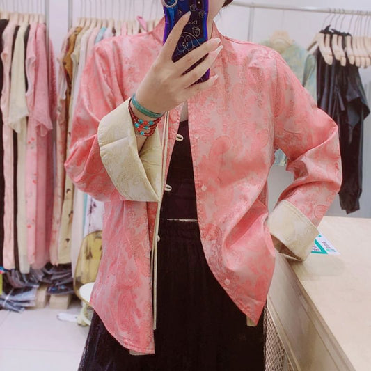 Traditional Chinese Stand Collar Paisley Jacquard Frog Buttoned Jacket
