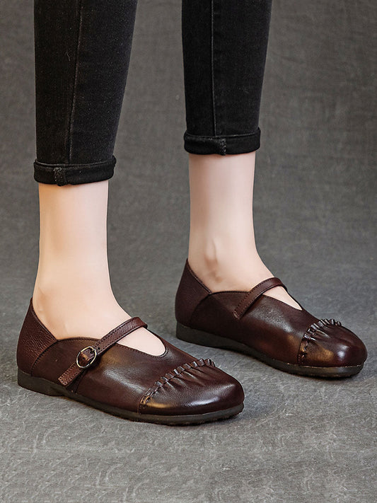Women Vintage Genuine Leather Stitching Low Heel Shoes AS1015