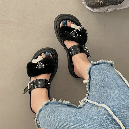 Women Vintage Summer Leather Spliced Low Heel Shoes AS1010