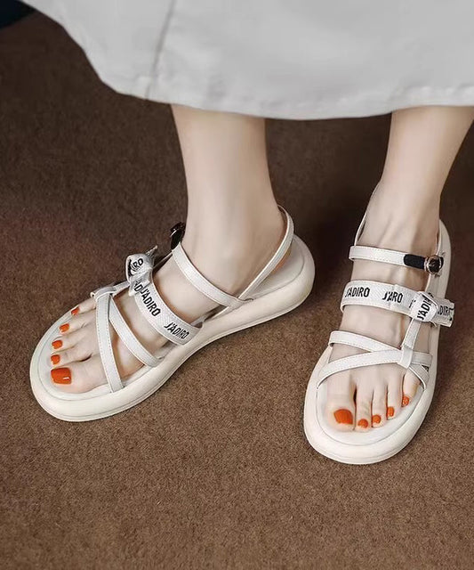 Boho Splicing Hollow Out Flat Clear Sandals White AA012