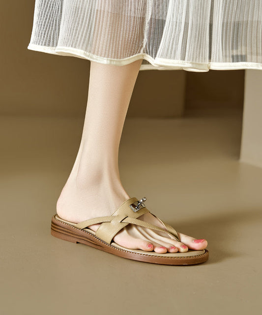 Stylish Apricot Hollow Out Splicing Slide Sandals AA021