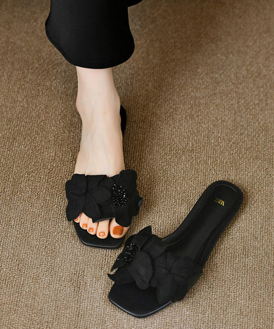 Rose Floral Splicing French Slide Sandals Peep Toe AA042