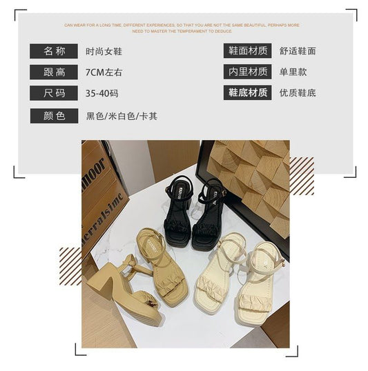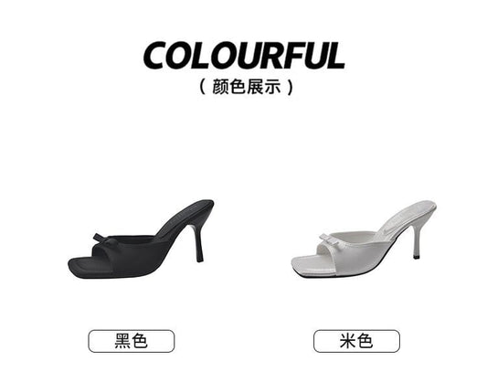 Square Toe Metal Accent Toe Loop Flat Slide Sandals