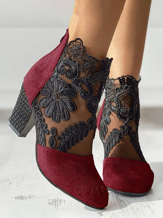 Lace Split Joint Chunky Heel Sandals Boots with Back Zip AH575