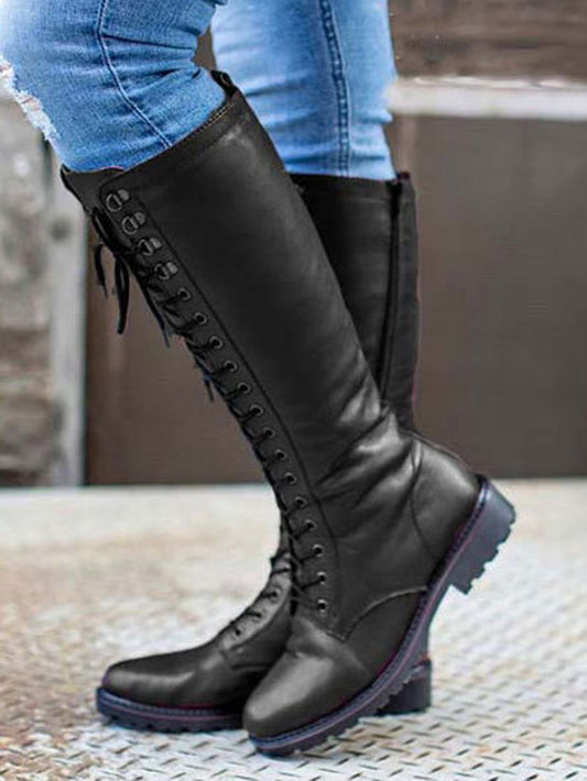 Comfortable Soft Lightweight Lace Up Chunky Heel Boots Footwear AH025