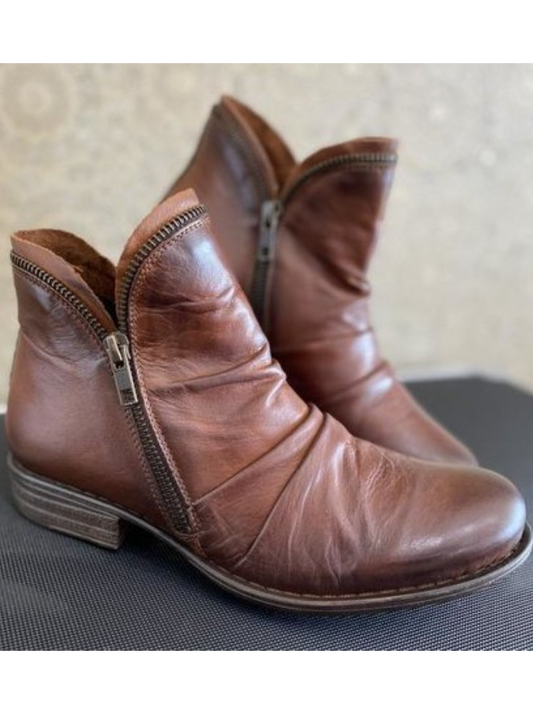 Comfortable Moccasin Upper Zip Block Heel Boots QAS41