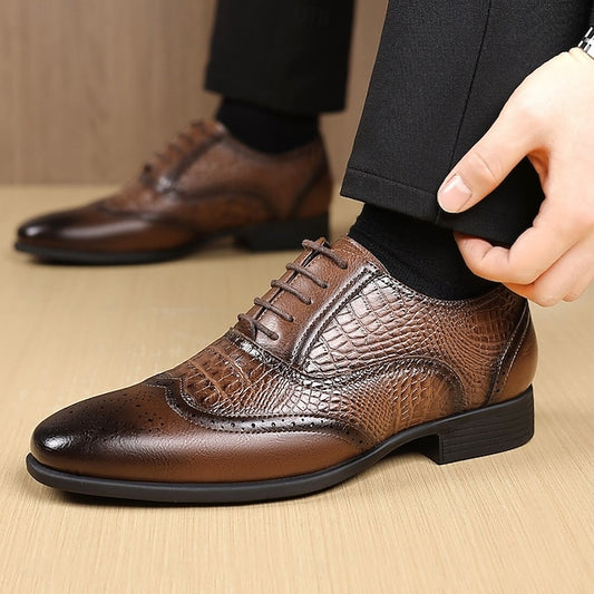 Men's Shoes Oxford Pattern – Brown Crocodile Leather Faux