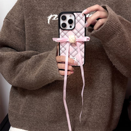 Ribbon Phone / Adhesive Case Set Plaid Decoration