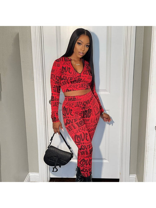 Letter Printed Matching 2 Piece Pant Sets Women AD364
