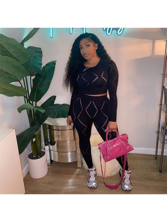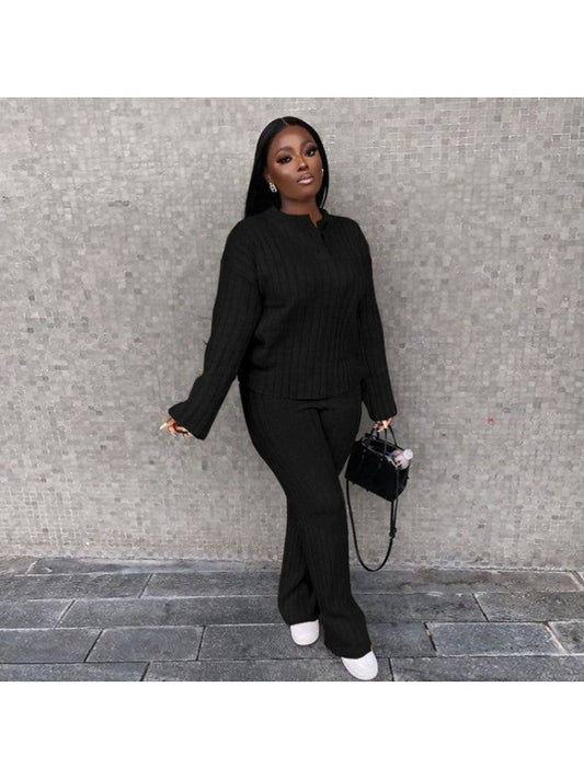 Simple Solid Black Matching 2 Piece Pant Sets VV115