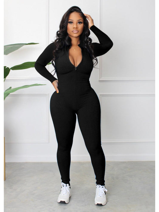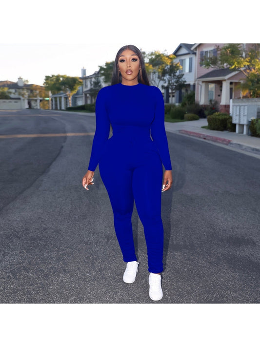 Simple Solid Long Sleeve Skinny Jumpsuits VV263