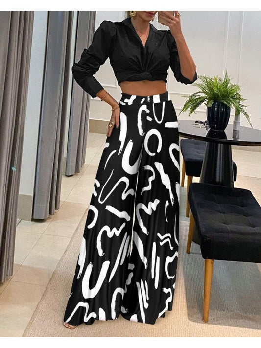 Printed Wide Leg Trouser And Blouse Top Sets AD485