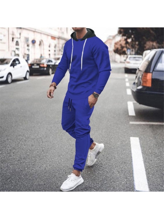 Sports Casual Hooded Pure Color Long Trouser Set AD088