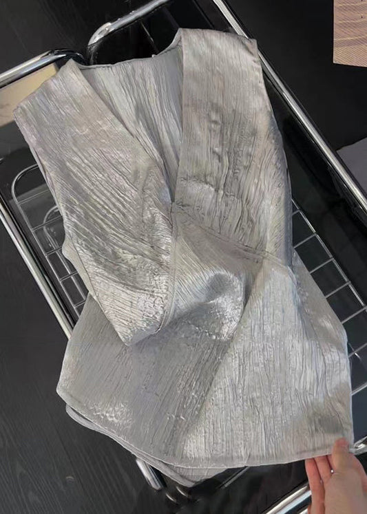 Neu Silbernes ärmelloses Seiden-Tanktop mit V-Ausschnitt und Schnürung